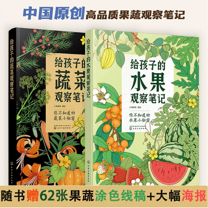 【贈62張著色線稿+2張4開海報 】孩子的蔬果觀察筆記(全2冊) 水果蔬菜科普大全書 中小學生日記周記素材 閱讀課外書