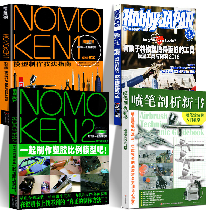 模型製作技法指南 NOMOKEN(1+2)+Hobby JAPAN 4+噴筆剖析新書(共4冊) 比例模型製作指南 工具和作業篇 高達改造塗裝技巧介紹教程