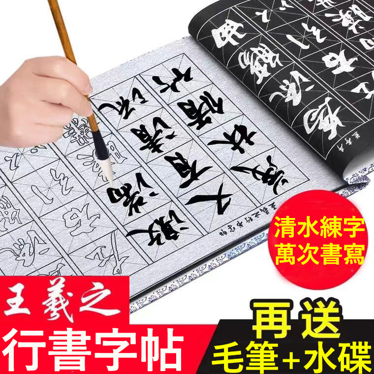 王羲之聖教序行書臨摹水寫布套裝 左臨摹 右練字(64頁水寫布+1只毛筆+水碟) 零門檻輕鬆練字 以水代墨重複練習 傳承經典!乾淨實用,萬次書寫,悄悄練字,然後驚艷所有人