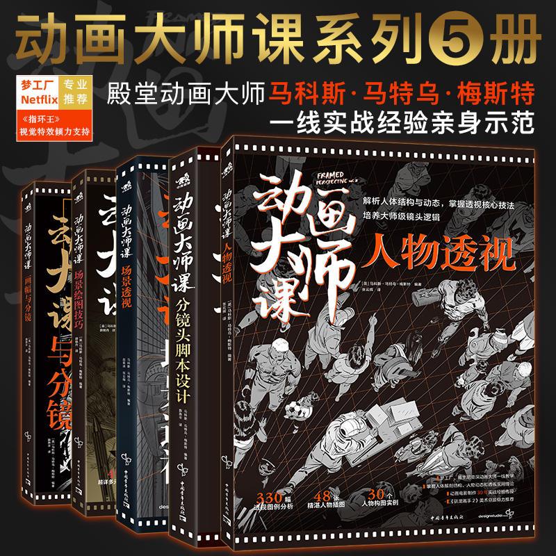 動畫大師課系列:分鏡頭腳本設計+場景透視+畫幅與分鏡+場景繪圖技巧+人物透視(全5冊) 製作運鏡理論 FRAMED INK系列中文版