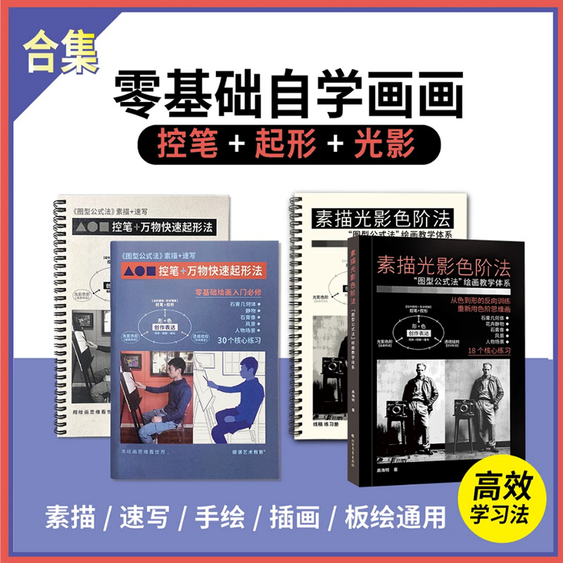 控筆萬物起形法+練習冊+素描光影色階法+練習冊(共4冊)直接畫臨摹本,光影素描本,繪畫教程書籍