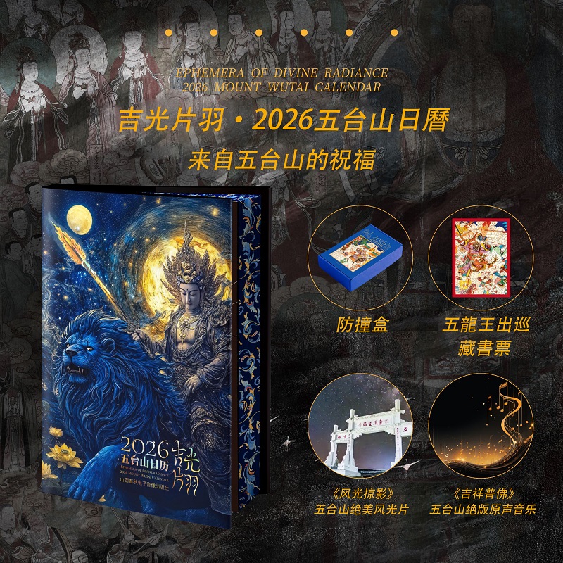 【三面刷邊 特裝紀念版】 吉光片羽2026 五台山日曆 防撞盒包裝 附贈 五龍王出巡藏書票+五台山絕美風光片+《吉祥普佛》五台山絕版原生音樂