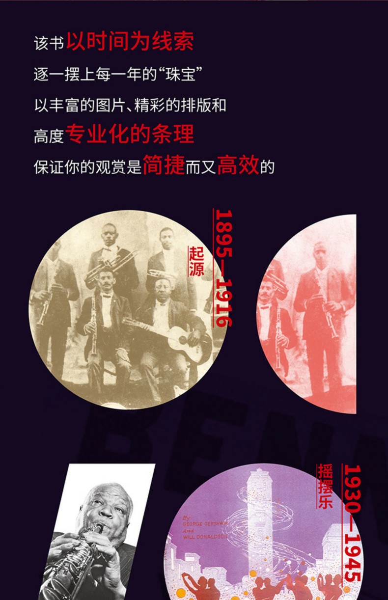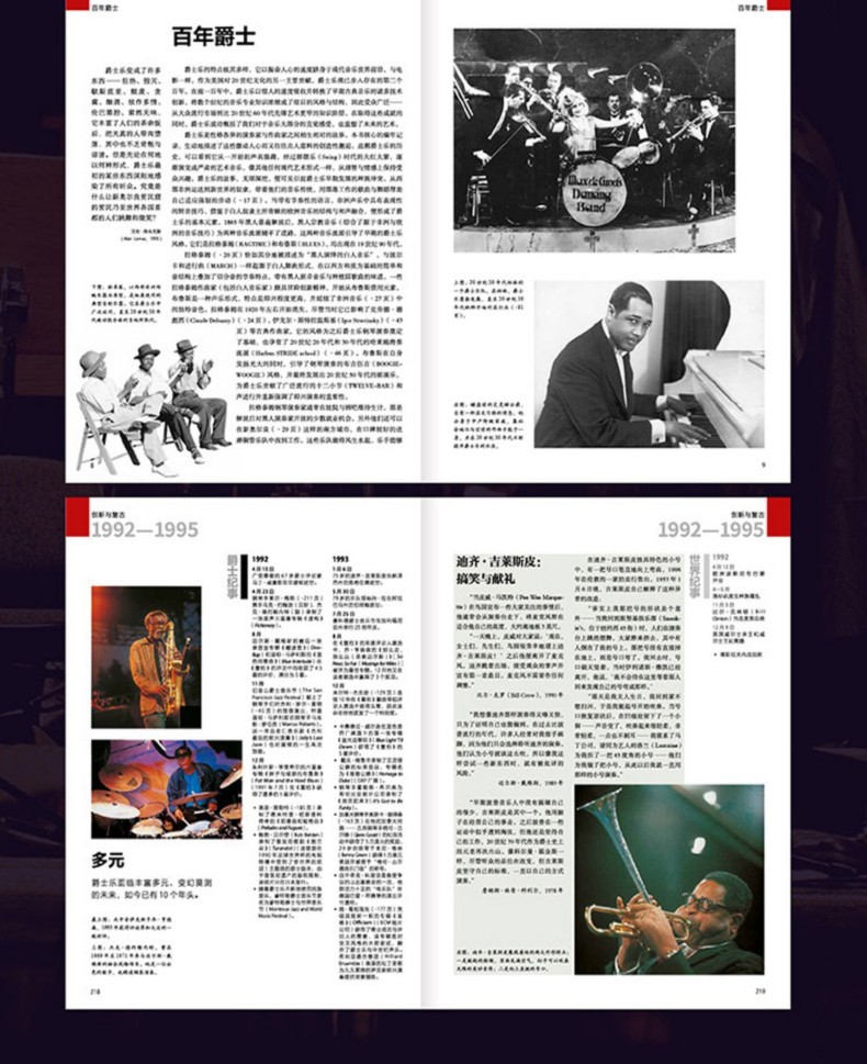 書中按照時間軸,詳細羅列了19世紀至今爵士樂的重要時間節點,包括作品創作、公開演唱會、專輯發行、關鍵人物事件等;同時列出了同時期的世界大紀事,記述了全球背景下爵士樂的發展。