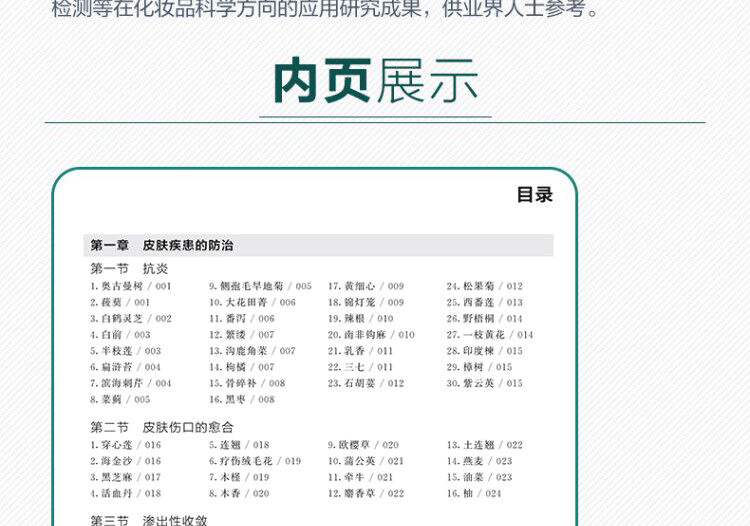2.本書能夠幫助讀者快速建立對化妝品的基本概念、生產工藝過程和功能化原料的認識,方便對天然化妝品的工藝和配方進行選擇和進一步開發研究,也可指導讀者解讀化妝品中天然組分的功效,幫助廣大讀者選擇合適的化妝品;