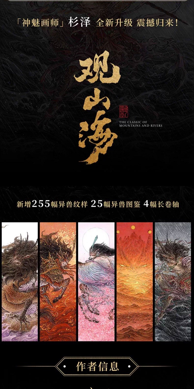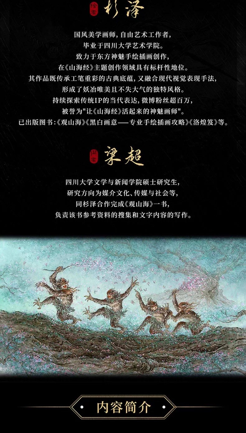 【馬年刷邊典藏版】觀山海 國風畫師杉澤2025新版 異獸觀山海經繪圖鑑 隨書附贈 (實木捲軸+藝術塗色卡+浮雕復刻畫+光柵卡+親簽)