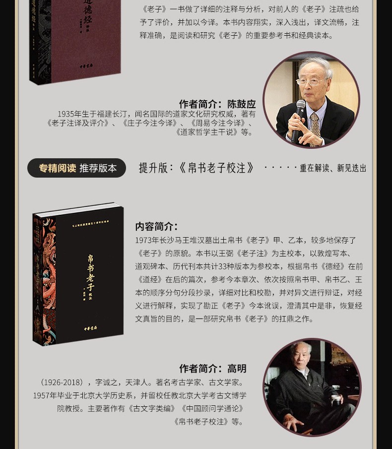 【 馬王堆漢墓發掘五十週年紀念版】道德經譯註+帛書老子校註 (函套禮盒精裝共2冊)三面刷邊 作者鈐印