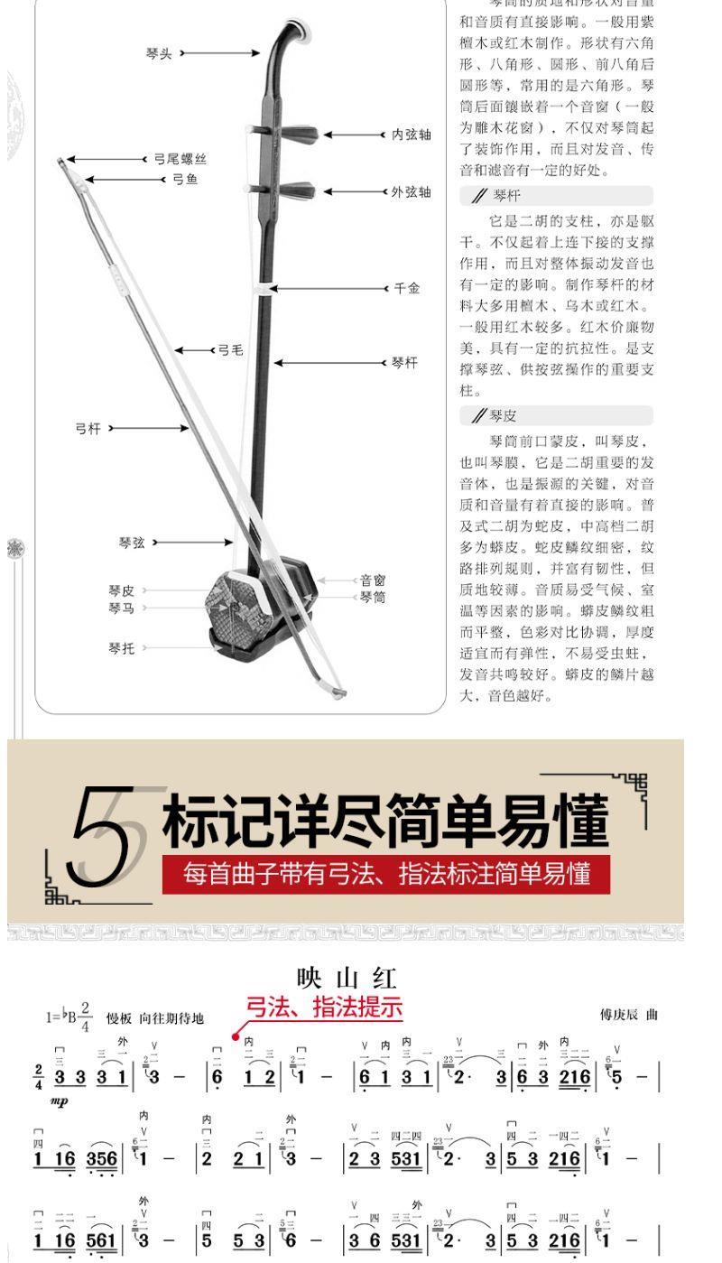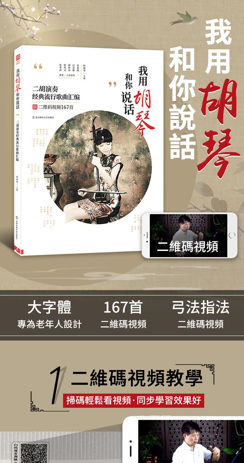 【附贈光盤DVD全套教程+掃碼看視頻】二胡演奏167首經典流行歌曲彙編——書中詳細標有指法,弓法,內外弦等 大字體,專為中老年人設計 高清視頻示範,一學就會!全台免運,貨到付款!