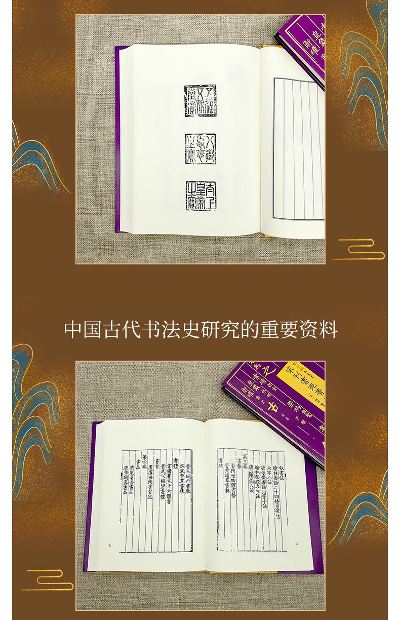 東晉永和九年(三五三)三月三日,王羲之與朋友於會稽山山陰(今浙江紹興)之蘭亭聚會,行修禊之事。詩歌唱答,表情言志。事後又將這些詩篇彙為一集,由王羲之親筆寫序,後稱《蘭亭宴集序》或《蘭亭集序》《臨河序》《楔序》《禊帖》。此序書體為行書,為王羲之的代表作。其傳本共有二十八行,三百二十四字。據傳說其真跡曾為唐太宗李世民所得,並曾命趟模等鈎摹數本,分贈親貴近臣。太宗崩,傳說以《蘭亭序》真跡殉葬。今傳諸本皆唐摹本,以神龍本為非常著名,石刻拓本則首推定武本。 《蘭亭序》既為王羲之書法代表作,傳本又多,故書法愛好者爭相購藏,頻加品題。品題既多,遂彙編成書,便成為有關《蘭亭序》的專著。