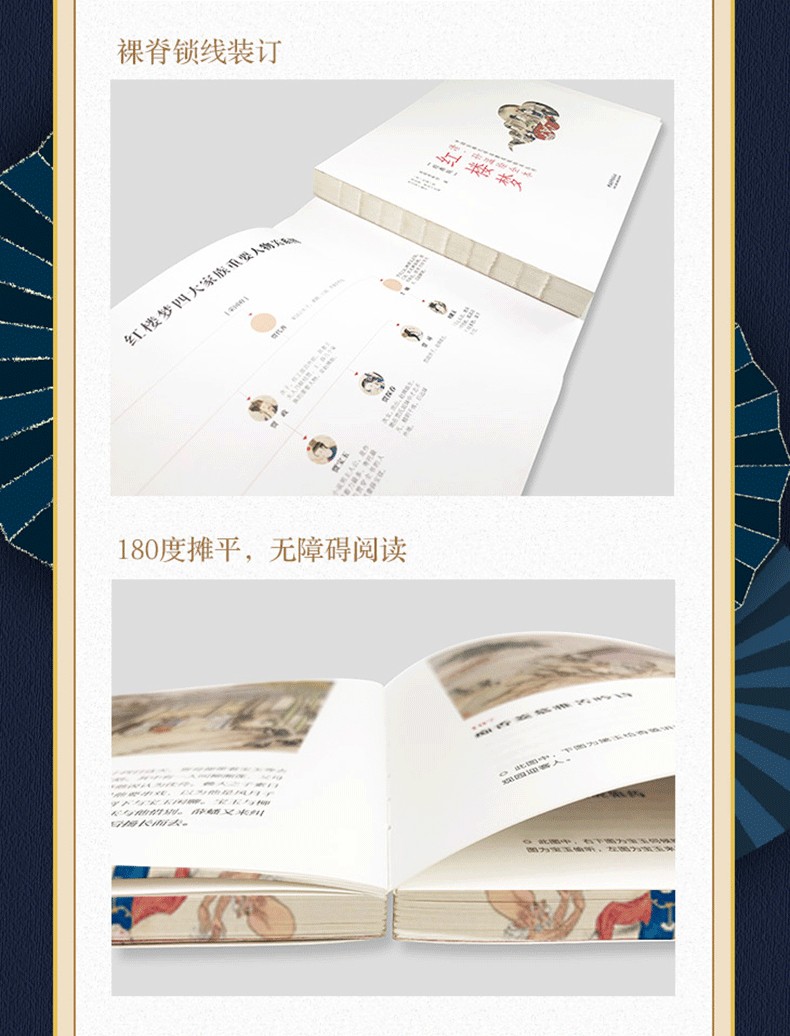 ●裸脊鎖線裝訂,180度無障礙展開閱讀,仿古特種紙精確還原畫作色彩和細節