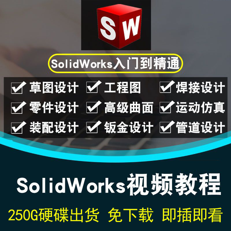 SolidWorks全套影片教學 零基礎自學 從入門到精通 指令詳解 草圖繪製 零件建模 組裝設計 工程圖設計 鈑金設計 有限元素分析 焊接 曲面設計 運動分析 動畫模擬 管路設計等(250G硬碟出貨 無需下載 即插即看 手機電腦都能永久觀看)
