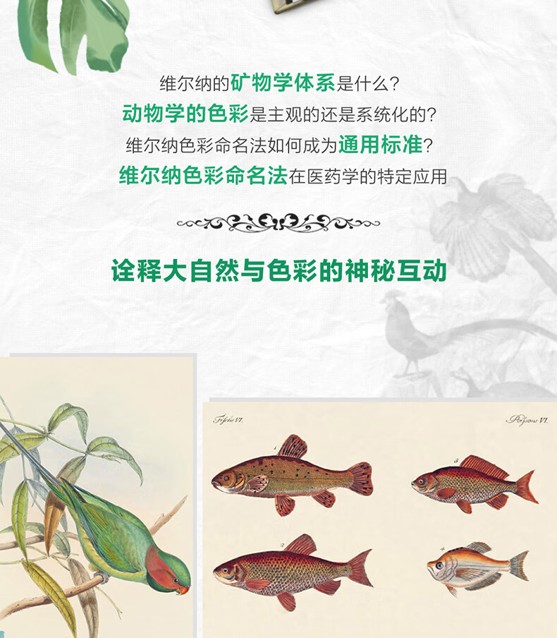 本書完整呈現了“維爾納色彩命名法”中的110種顏色,通過1000張動物、植物、礦物類別的插圖,介紹這110種顏色命名的由來,以及目前西方世界對“維爾納色彩命名法”的研究與解讀。