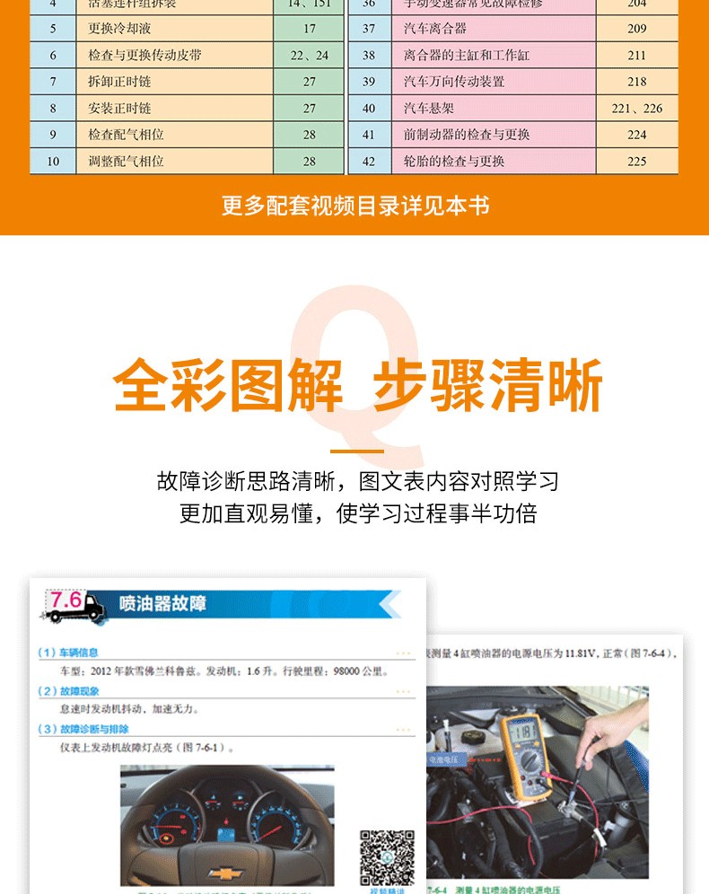 全書分上下兩篇共22章介紹。上篇為汽車電氣基本構造與原理,以全彩圖解的形式,重點介紹汽車電氣系統各大組成部件的構造原理;下篇為汽車維修與故障排除,結合視頻講解,重點介紹汽車電工維修基本知識和操作技能。