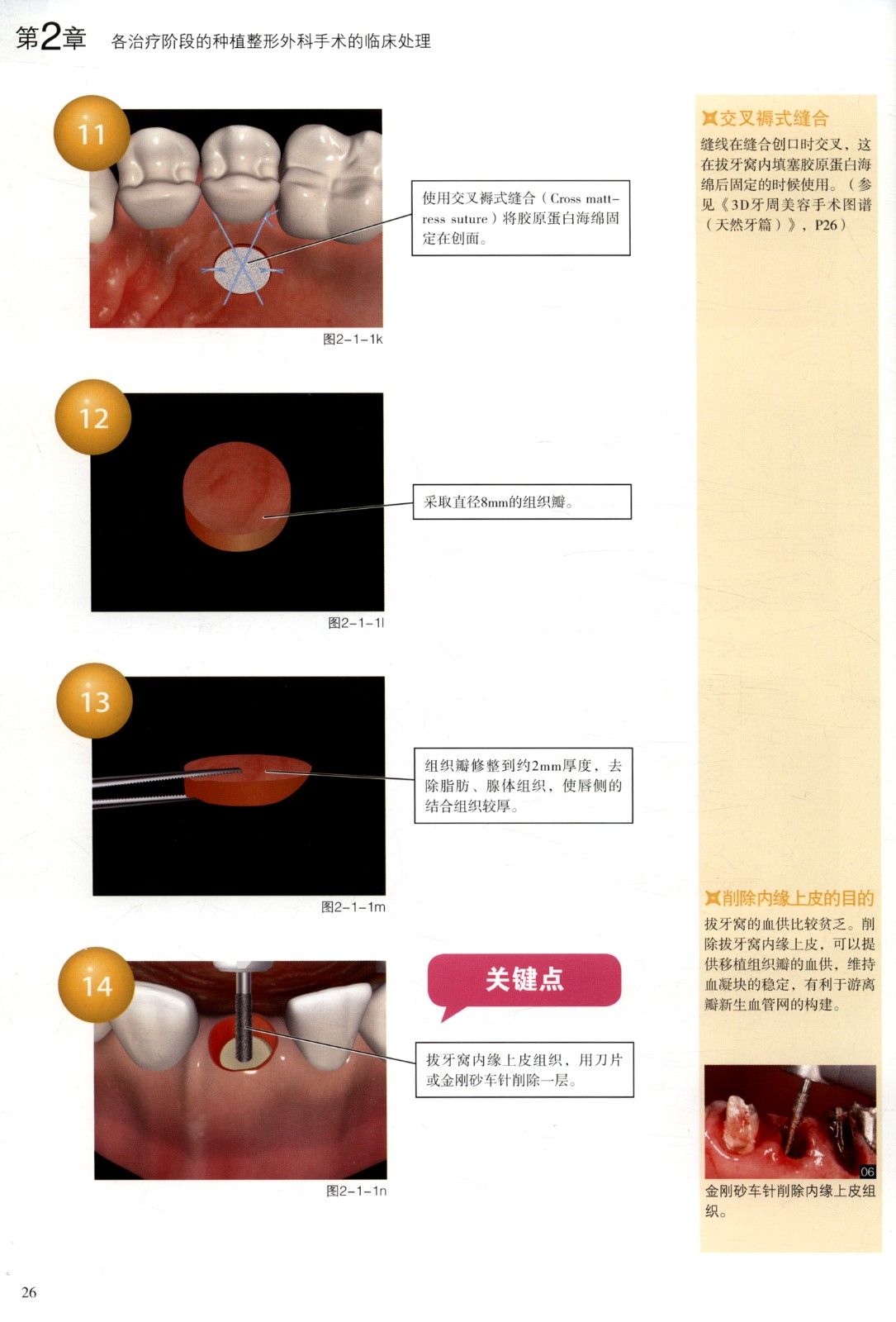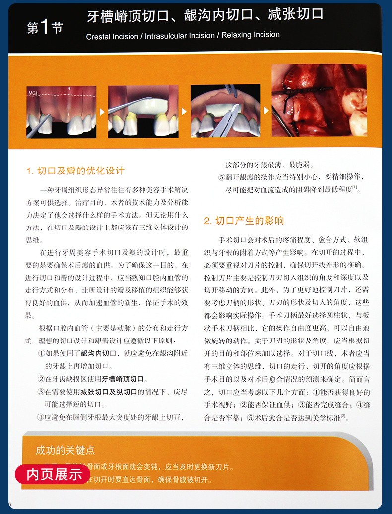 本書力求“容易看”“看得懂”,把平面圖難以表現出來的操作重點及軟組織特徵描繪出來,筆者採用立體的3D插圖來更清楚地展示手術過程,如手術中瓣的厚度及位置變化、器械的角度與方向等,故特別適合手術時放在椅旁,做到哪一步就翻到對應的頁面,邊做手術邊確認手術方法。