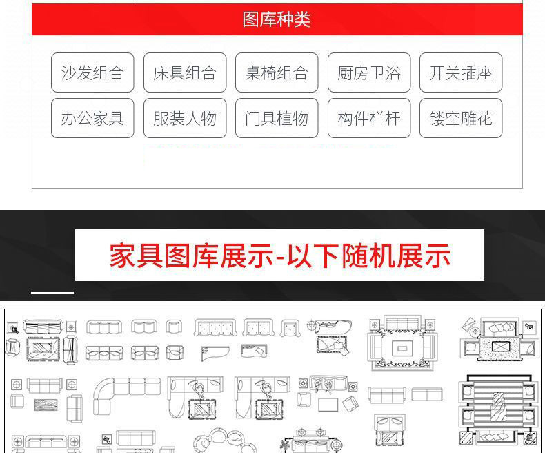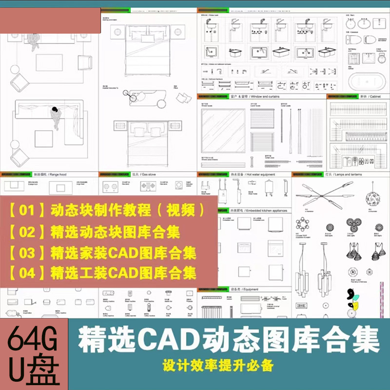 2025全新 CAD動態圖庫大全 室內設計 工裝 家裝 家具平面立面 中式歐式施工圖 動態素材庫 (64G U盤發貨 無需下載 即插即看)