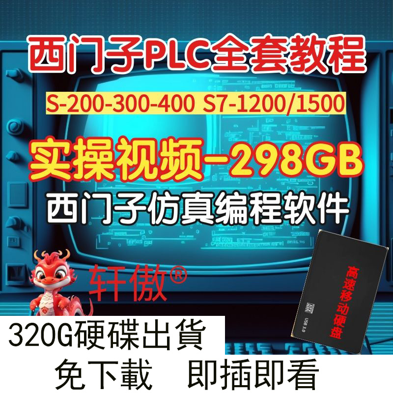 西門子PLC全套視頻教程 S7-200/300博途1200/1500 WINCC觸摸屏 仿真編程軟件全套視頻課程(320G 硬碟出貨 免下載 即插即看)
