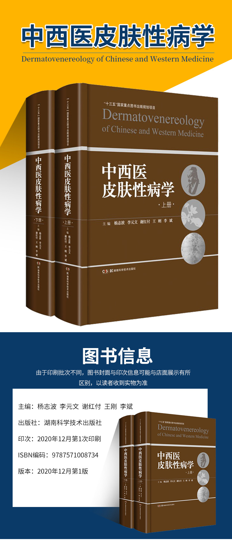 《中西醫皮膚性病學》是一本大型專業型著作,“十三五”國家重點出版物出版規劃項目。該書組織全國中西醫皮膚科界100 餘名專家共同編寫,歷時2 年。本專著200多萬字,其中含病種近600 種,涵蓋了皮膚科臨床常見疾病、部分少見病、少數罕見疾病。本專著有幾個突出優勢:①內容豐富,有傳承、有創新,亦有突破。 ②圖文並茂,便於讀者一目了然認識疾病。 ③中西並重,從中醫之“辨證”談到西醫之“辨病”,以“病證結合”的診療思路,將中醫與西醫融匯貫通,促進中西醫互相學習。本書的出版,為提高中醫、西醫、中西醫結合三支醫療力量的臨床思維能力和實踐水平,提高我國皮膚性病學科的學術發展水平和國際醫療核心競爭力做出了重要貢獻。