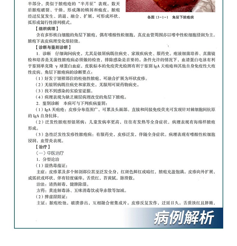 2.鑑別診斷 本病可與下列疾病進行鑑別: (1)帶狀皰疹:水皰沿神經分支呈帶狀分佈,水皰相對較大,皰壁緊張發亮,皰液澄清,外周繞以紅暈,各簇水皰群間皮膚正常,伴顯著神經痛。