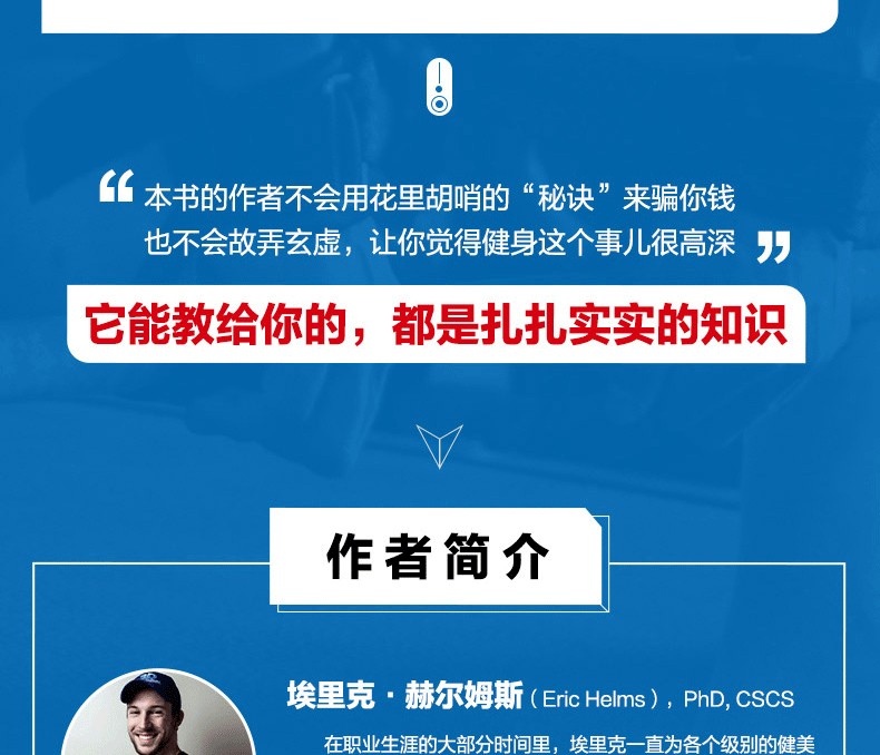 作為一名發表過多篇關於營養與力量方面文章的研究人員,埃里克對科學也“略知一二”。他教授過本科生和研究生水平的營養與運動科學課程,擁有健身與健康學士學位、運動科學碩士學位、運動營養學第 二碩士學位、力量與體能博士學位,是新西蘭運 動表現研究所的研究員。
