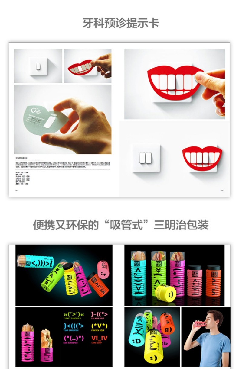 “全球經典包裝設計”系列包括《全球產品包裝設計經典案例》《全球品牌包裝設計經典案例》《全球食品包裝設計經典案例》《全球趣味包裝設計經典案例》,結合東西方設計美學,融入趣味、清新、華麗、簡潔等設計風格,引領你感知美、欣賞美並創造美。本系列匯聚了世界各地奇思妙想的包裝設計和獲獎作品,從實用的商業包裝到創造性的實驗性包裝,從有趣的食物包裝到精緻的飾品包裝,內容涵蓋十分廣泛,同時呈現瞭如何通過包裝設計傳遞產品或品牌的創新概念。 《全球產品包裝設計經典案例》收錄了全球近200種產品的包裝設計經典案例,內容豐富且風格多元,兼具實用性、創意性、審美性,通過海量整版精彩圖片,搭配精要文字,直擊設計思路、分享創意思維,多角度清晰展現產品包裝的設計細節,對於藝術設計從業者、工業設計從業者而言,都是的參考資料和靈感來源。
