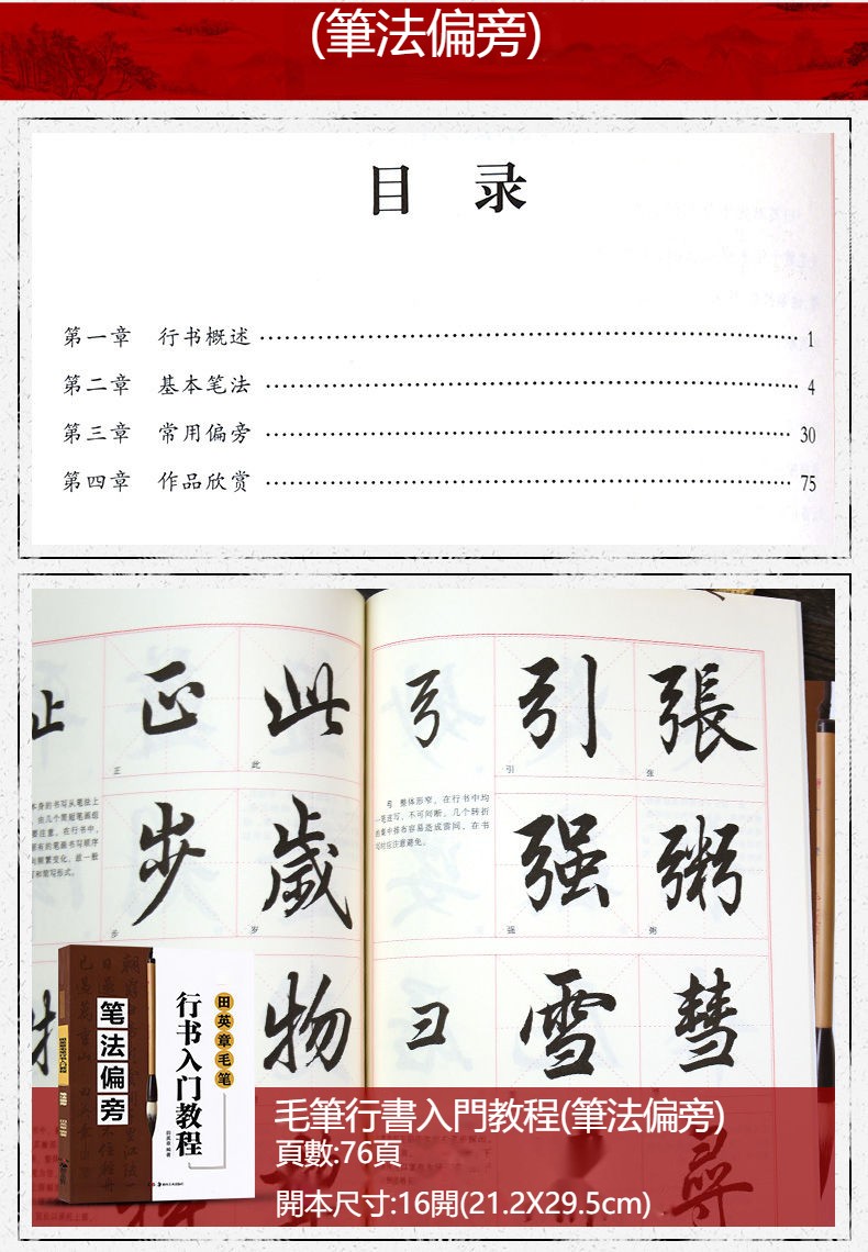 田英章毛筆行書入門教程 間架結構+筆法偏旁+作品創作 3冊 NT$990