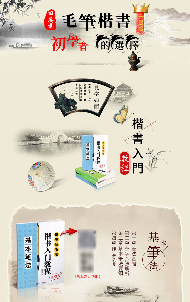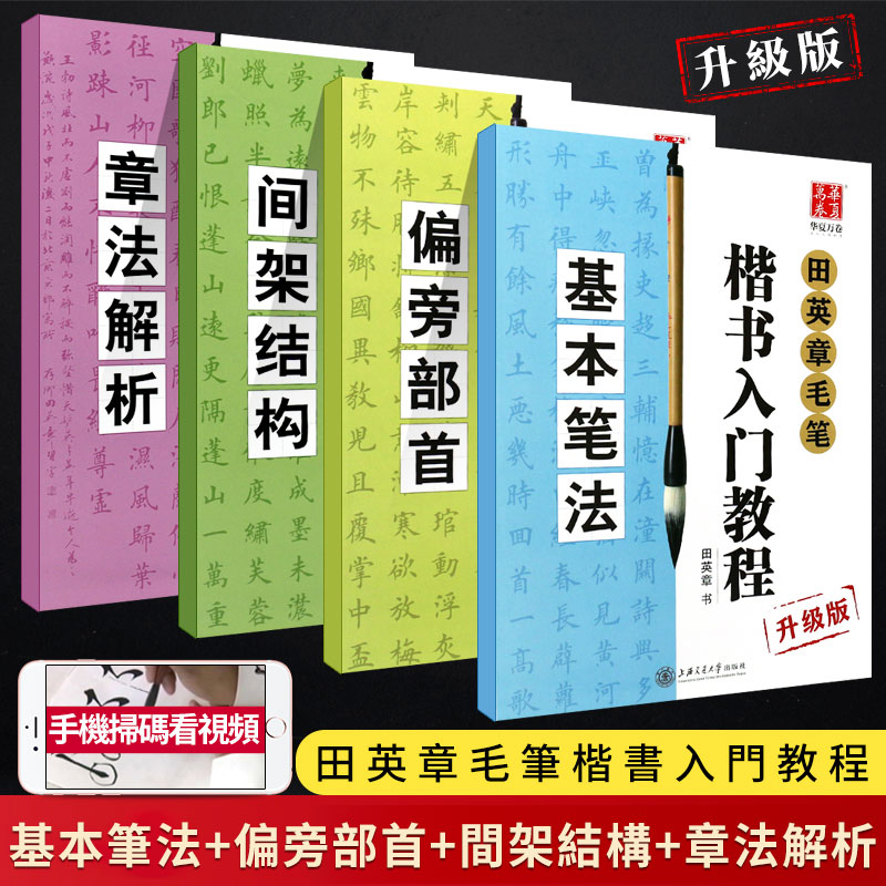 【贈視頻教程+毛筆+水寫佈+水碟】4本裝 田英章毛筆楷書入門教程 基本筆法+偏旁部首+間架結構+章法解析 NT$1285