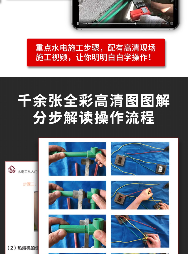 3.掃碼看現場高清視頻。重點水電施工步驟,配有高清現場施工視頻,觀看施工要點與細節,補充圖文講解的不足。