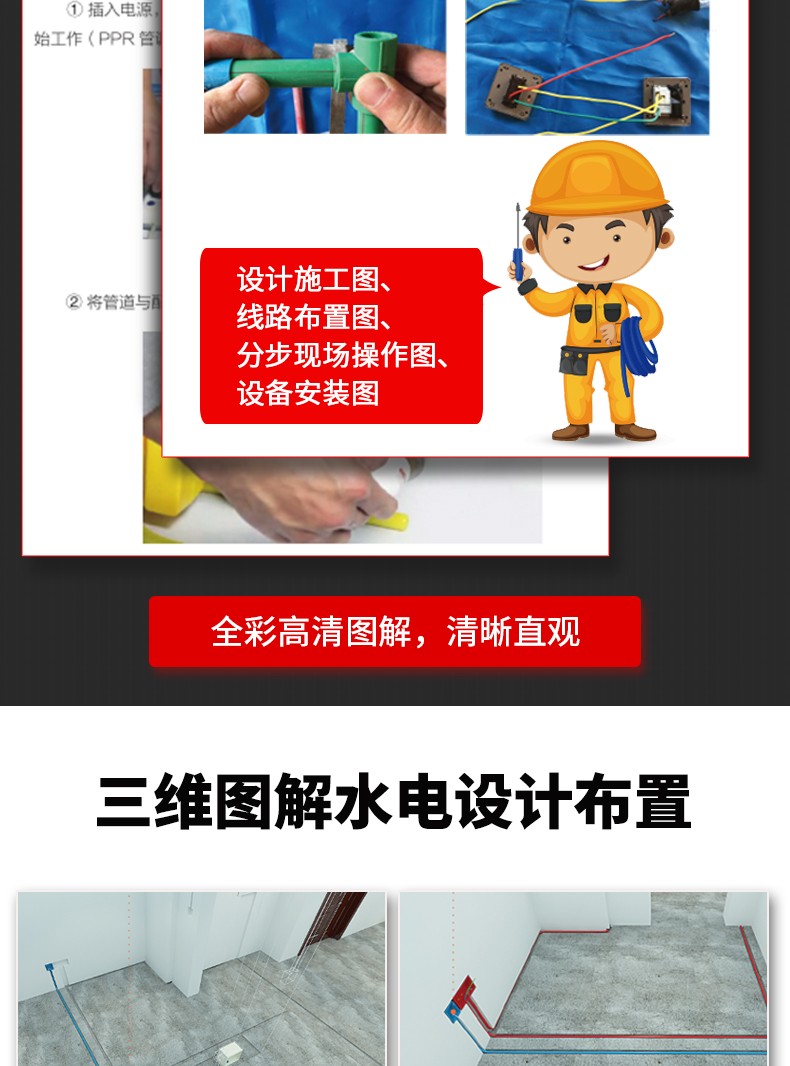 本書作為一本全面、系統的水電施工技術書籍,不僅有系統的基礎知識,還有豐富的圖解過程,更有清晰的現場施工操作視頻,特別適合想要從事裝修水電施工的現場工人以及技術人員參考學習,也可供家裝業主參考使用。