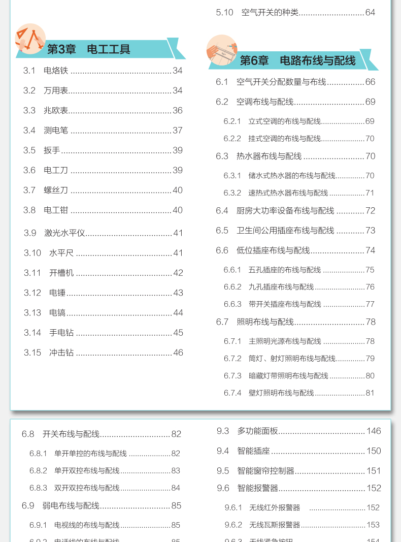 本書分為電工部分和水暖工部分,包含六篇、二十四章內容。電工部分主要介紹裝修電工施工。第一篇為電工入門篇,內容包括電路施工圖紙識讀、電路端口空間佈設、電路工具以及電路施工預算等;第二篇為電工提高篇,這部分為核心內容,包括識別管線、電路佈線與配線、電路接線以及現場施工等內容;第三篇為電工精通篇,內容包括智能家居系統施工、用電設備安裝、電路修繕以及家庭用電安全等。