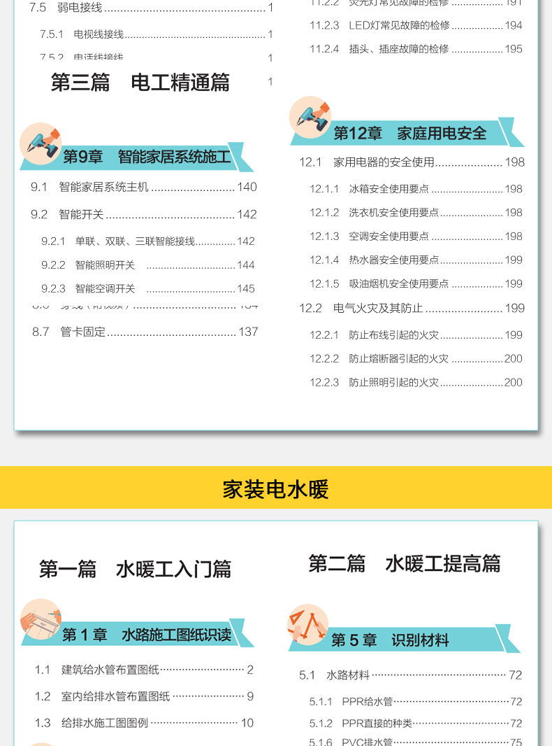 水暖工部分主要介紹裝修水暖施工。第一篇為水暖工入門篇,內容包括水路施工圖紙識讀、水路端口空間佈設、水暖工工具以及水暖施工預算等內容;第二篇為水暖工提高篇,內容包括識別材料、水路布管、水管連接、水路現場施工、水暖施工以及消防系統施工等內容;第三篇為水暖工精通篇,內容包括水路安裝以及水路修繕等內容。