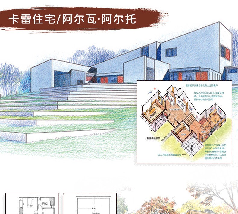 本書介紹了60多座世界著ming的住宅建築,包括31座掀起世界變革的住宅建築、15座日本經典住宅,以及9種紮根當地環境的住宅,卷末集錦則介紹了日本建築發展歷程中11種建築的由來。此外,本書的建築家專欄收錄了22位建築大師的簡要介紹。書中先對住宅進行總體介紹,然後分別就其具體的設計精彩之處進行解析,還搭配了平面圖,分析住宅內部格局的佈置,以供讀者參考。本書圖片採用手繪形式,圖文精美,文字精煉,可閱讀性較強。通過圖文對照,讀者不但可以看得見此住宅的內外設計,還可以感受到居住在其中的人文生活。