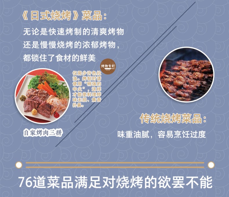 這是一本燒烤愛好者的必收書,包含了76道由日本料理研究專家齊藤辰夫親手製作的燒烤料理,無論你想吃魚、肉、蛋還是其他食材,這本書都能滿足你,而且還能讓你吃得營養又健康。