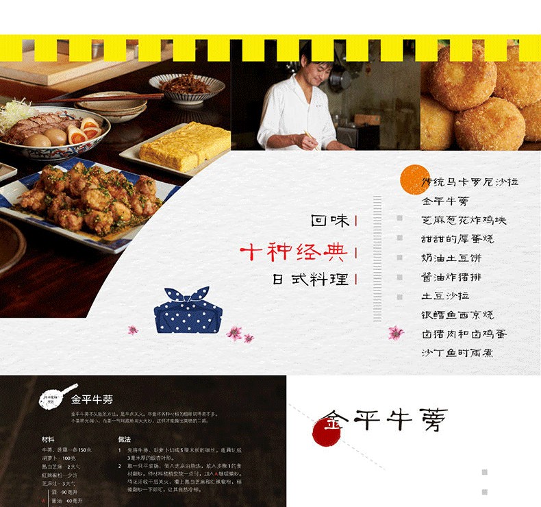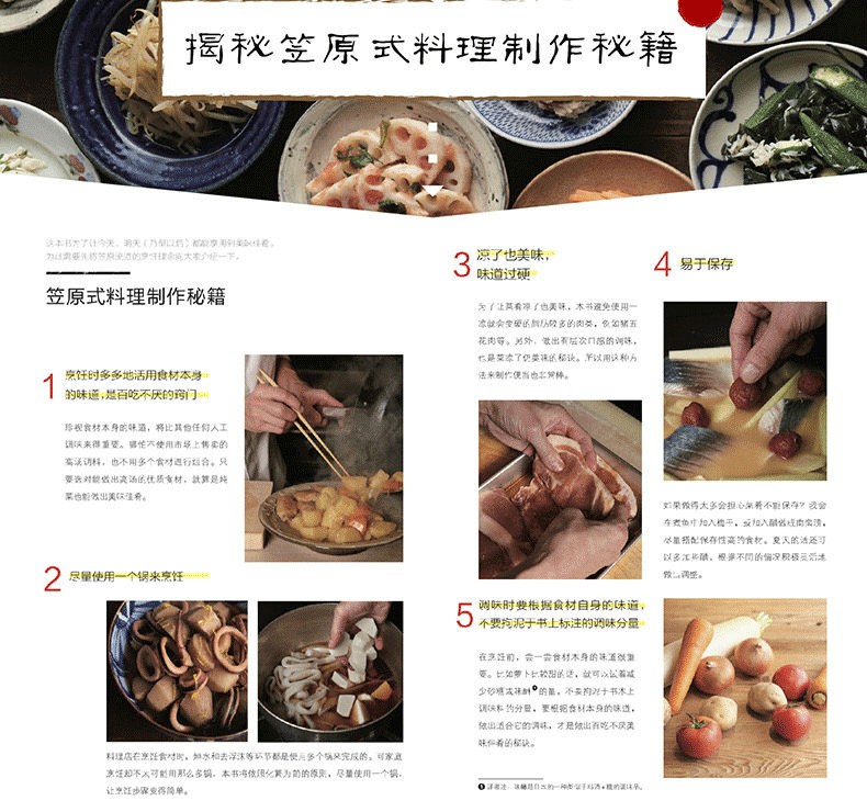 本書是日本名廚、“贊否兩論”店主笠原將弘新推出的一本關於經典和風料理製作的美食書。書中收錄了十種老味道、不需要預製高湯的燉煮菜、肉類料理、魚類料理、蔬菜料理、乾貨和方便食材的料理以及能長時間保存的沙拉,從經典食材的推薦料理到經典和風料理的製作方法,不僅給日式料理愛好者帶來了傳統純正的日式風味,還給了從事日式料理製作的專業人士一些秘籍展示。