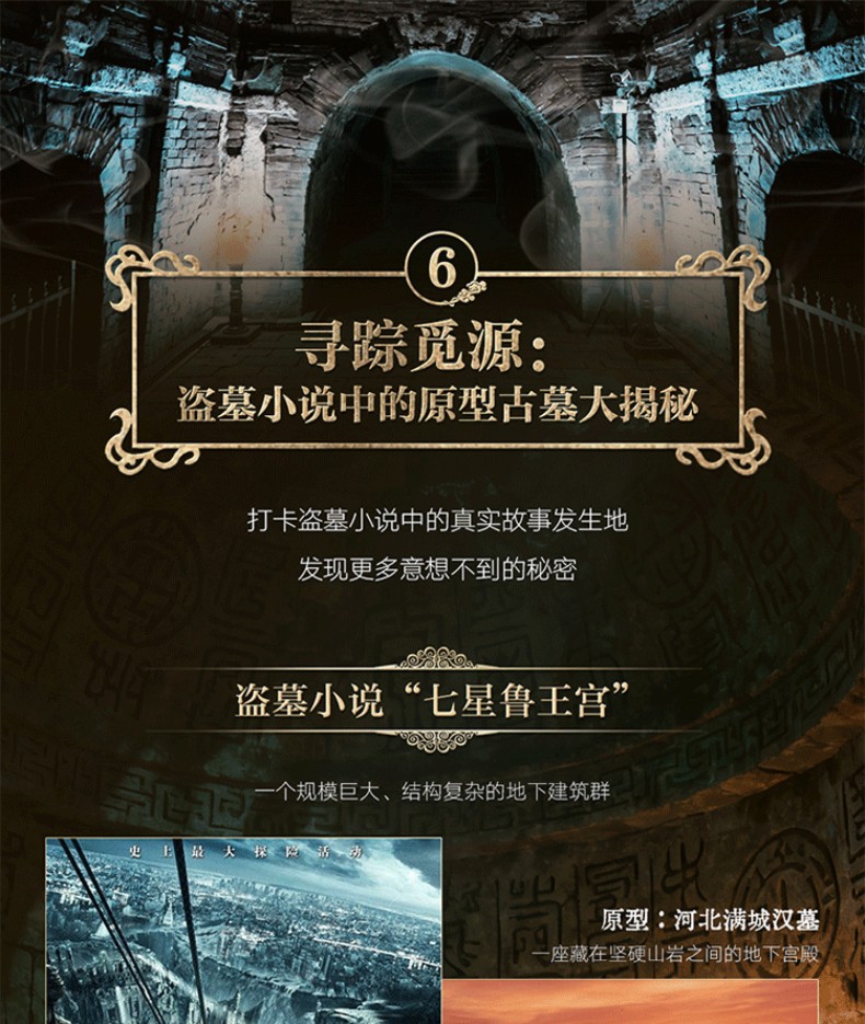 6. 溯源盜墓小說的原型與靈感來源:《盜墓筆記》中的「七星魯王宮」「秦嶺千棺鎮」的原型是哪裡?核心道具「玉俑」與「秦嶺神樹」的靈感來自哪件文物? 《鬼吹燈》中的「雲南蟲谷」與雲南晉寧石寨山古墓群之間有什麼樣的關聯?出土文物「貯貝器」就是故事中被詛咒的物證?為什麼青海都蘭熱水墓群的血渭一號墓被當地人稱為「九層妖塔」?打卡盜墓小說的故事發生地,探索迷團背後的歷史真相,讓閱讀過程充滿發現的樂趣!